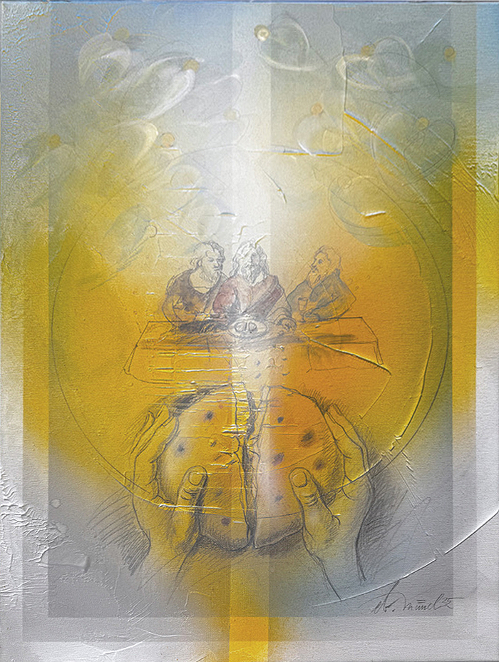 Wandmalerei 4,50 m x 4,50 m mit Keimfarben und Blattgold in der kath. Kirche St. Laurentius in Bonn- Mondorf 3/ 2025